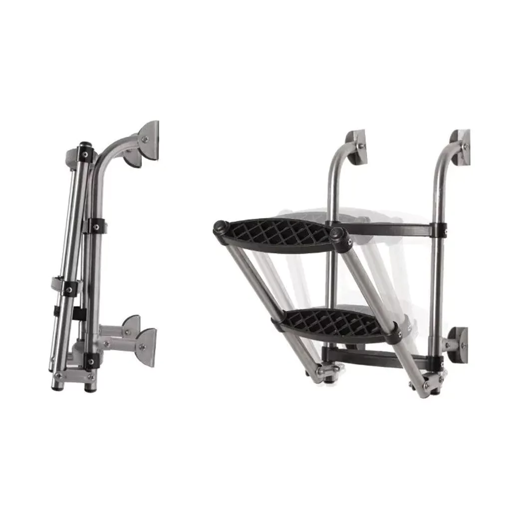 Esta escalera plegable sobre espejo de 3 escalones, está fabricada en aluminio anodizado, lo que la hace muy liviana, con soportes de montaje de acero inoxidable y giratorios. Se despliega en el agua de forma rápida y sin problemas para un uso seguro. El cuerpo de la escalera es un tubo de aluminio anodizado de 25mm (1") de diámetro para una mayor durabilidad y resistencia a la corrosión.