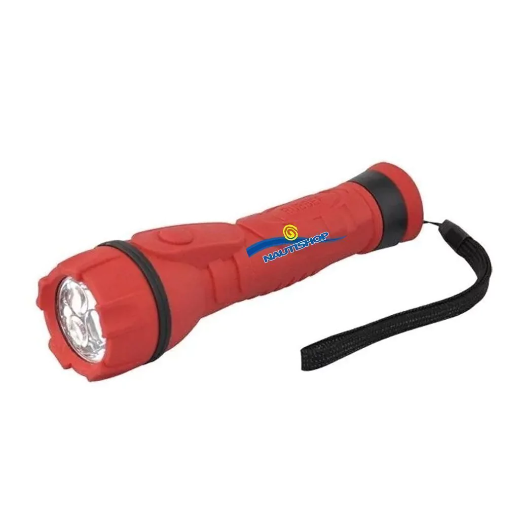 LED: 3 LED Batería: 2 x AA Tamaño: 43*160 Material: TPR y caucho Color rojo Botton: cuerpo pulsante Resistente al agua Correa |